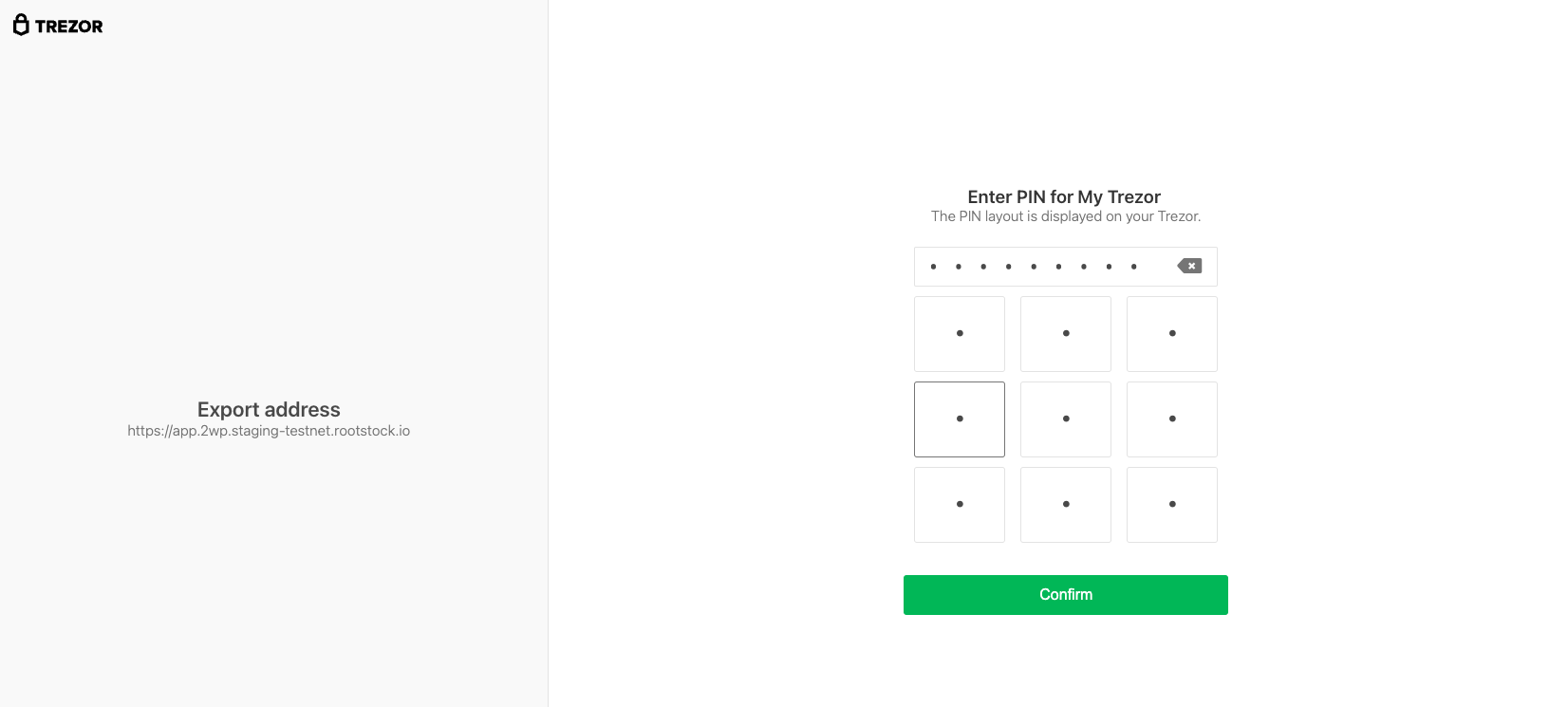 Step 7: The trezor window will open to insert the pin and export the addresses
